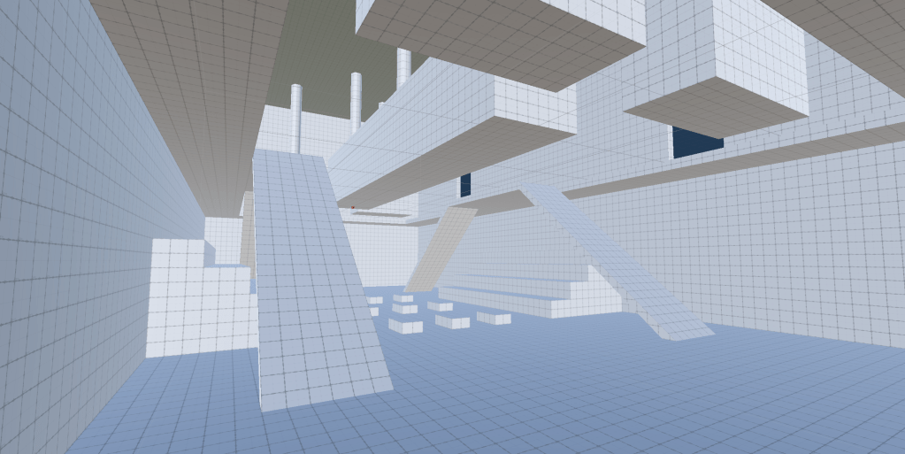 A problem that exclusively affects greyboxing is that probuilder is not very good at making domed shapes. This means everywhere a domed shape is wanted in a greybox it either looks awkward or is replaced with a solid cylinder. This doesn’t really affect development because all probuilder shapes will need to be replaced with appropriate models because of the limitations with Ayfel’s prefab lighmapping.