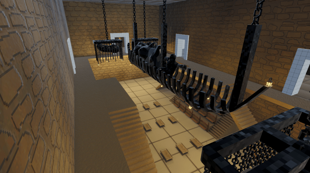 I whipped up some quick decorations to finish the important sections of TS1_1x2_1. The 4 chandeliers are concerningly high poly count and will definitely be cut down and remade if performance problems arise.