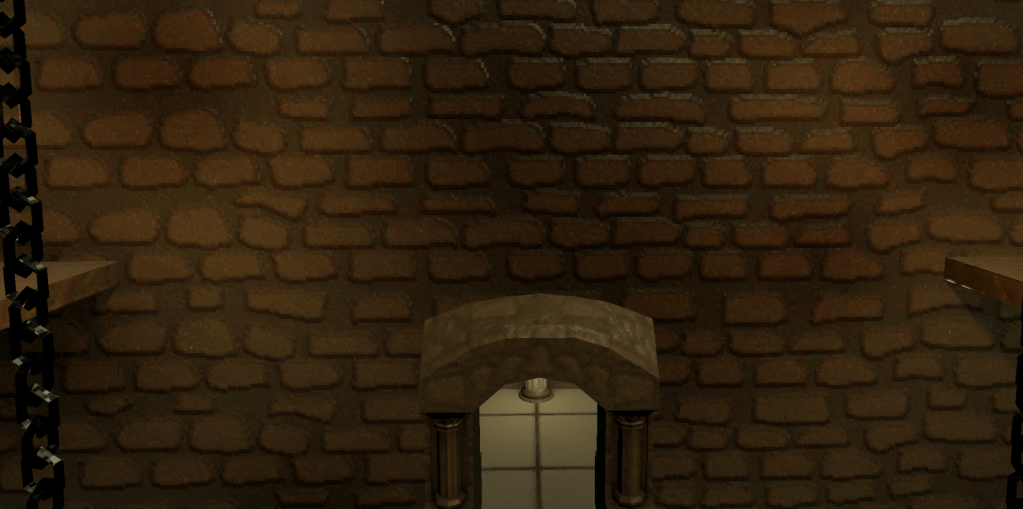 A long time ago I complained about the wall textures falling out of favour with the recent textures. I have remedied this by slightly changing it. I have blurred the brick outlines a little and changed up the colours to be more contrasty. I accidentally created a rather nice wall texture in my starting room by scaling down the brick seams so by blurring the outlines it achieves a similar result.