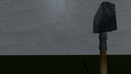 I added the model and animation for the shovel. The animation is fairly plain but serves its purpose fine. By making the animation longer than the swing time it also allows a built-in holding animation between swings. I am also fairly happy with the model for the shovel. Having a slightly crooked handle really helps break up the monotony.